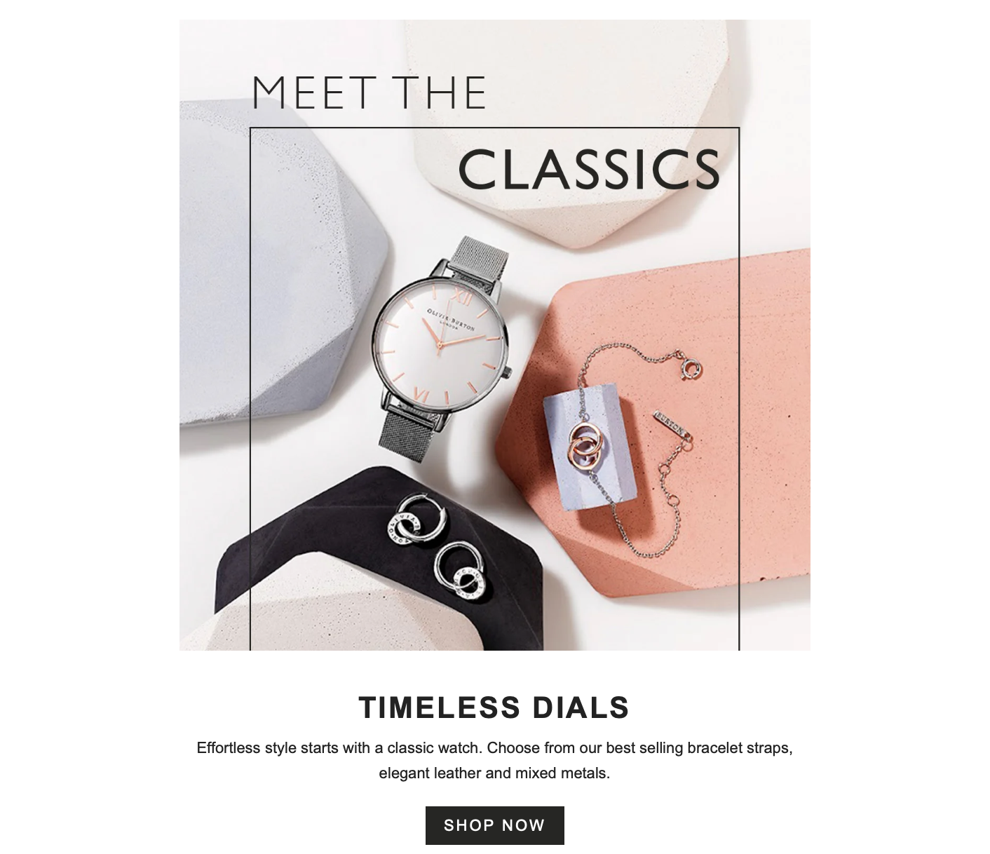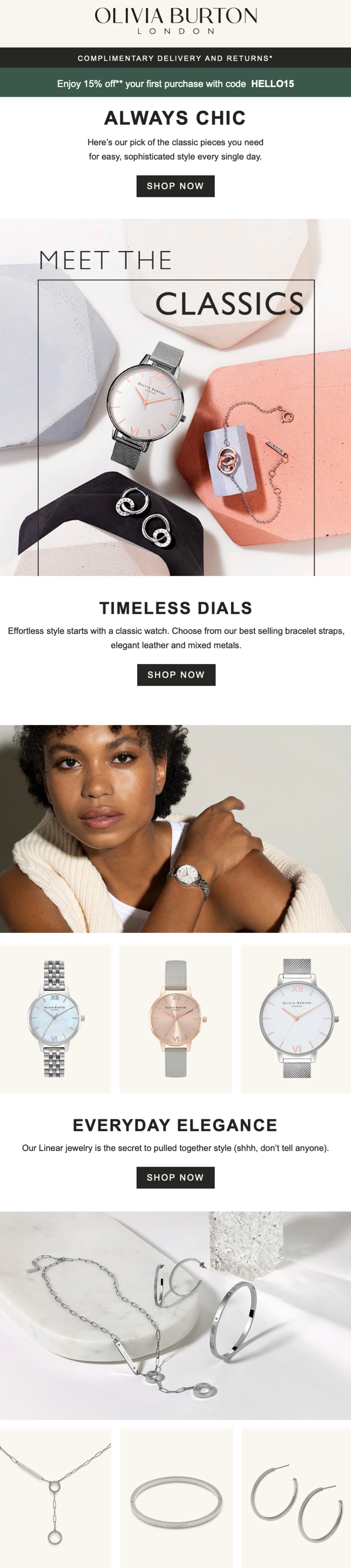 I first started working with watch and jewellery brand Olivia Burton back in 2019 and it’s been a pleasure being a part of the huge journey the brand has been on. Most recently I’ve created a tone of voice document for the team to support this year’s big rebrand and continue to work with them on all their copy needs, from OOH tube campaigns and instore signage to email newsletters and social posts. With a brand that’s playful, sophisticated and a little bit cheeky, it’s always a real pleasure to write words for them!